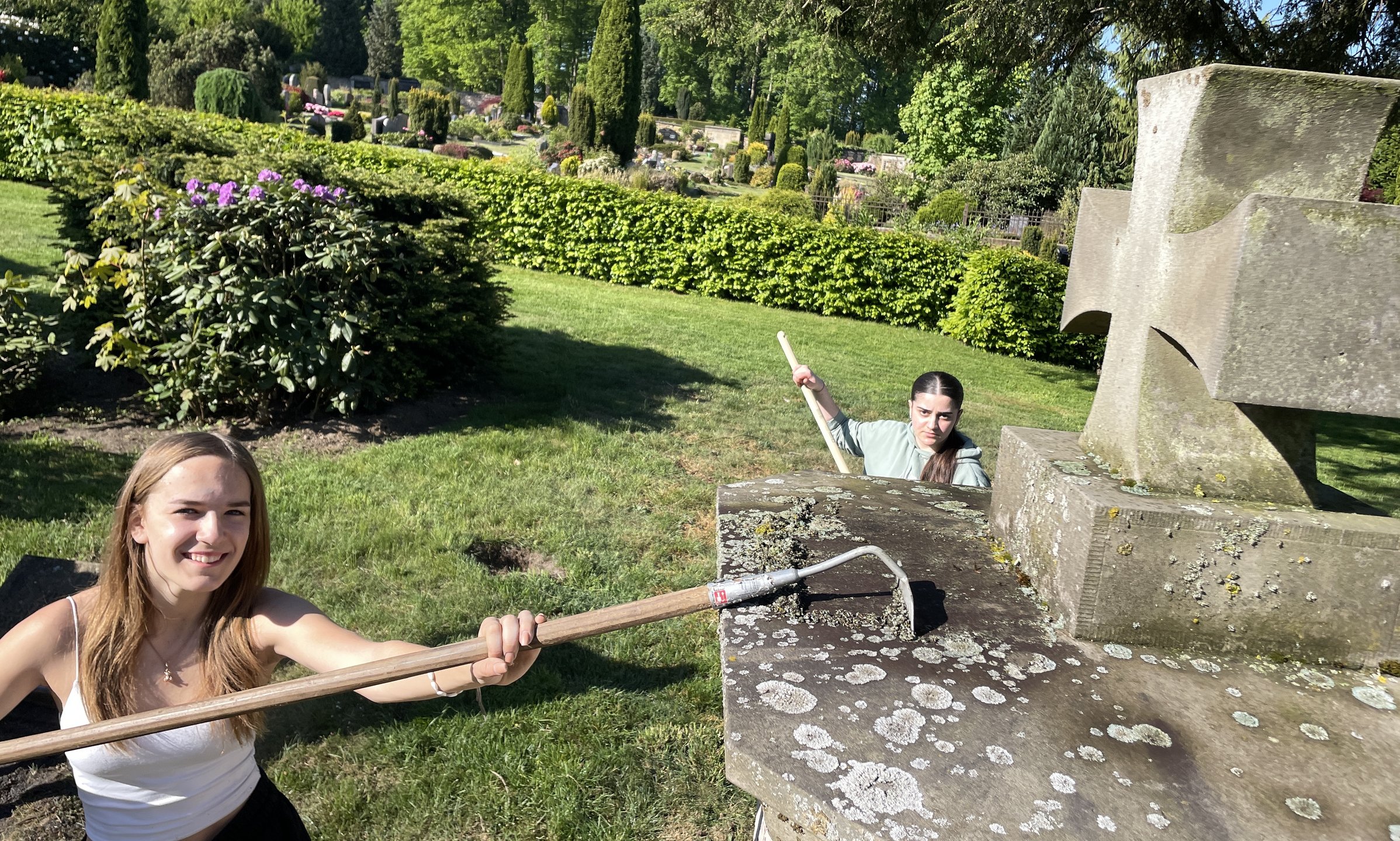 „Man sieht, was man schafft“, strahlt Moritz Bock, „und wir tun etwas, das für die Gemeinschaft nützlich ist“. Seine Mitschüler mähten den Rasen oder entfernten das Moos von den Kreuzen und üppigen Gedenksteinen.